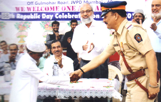 SR. INSPECTOR OF JUHU POLICE STATION MR. SUNIL GOSALKAR CONGRATULATING STUDENT FOR REPUBLIC DAY SPEECH